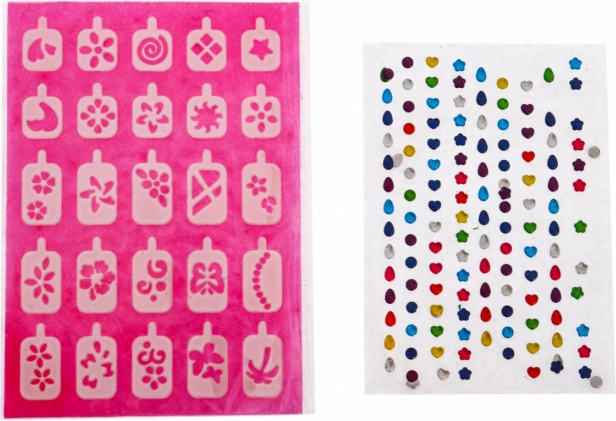 - Lepljive okraske za nohte v različnih oblikah in barvah.