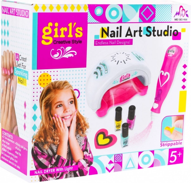 Doživite veselje ustvarjalnega okraševanja nohtov z našim kompletom za male nohtne umetnice od 5. leta dalje. Ta set vsebuje vse potrebne pripomočke, vključno z varnim in nestrupenim LED sušilnikom za nohte ter barvnimi laki, ki jih je po koncu zabave enostavno odstraniti.