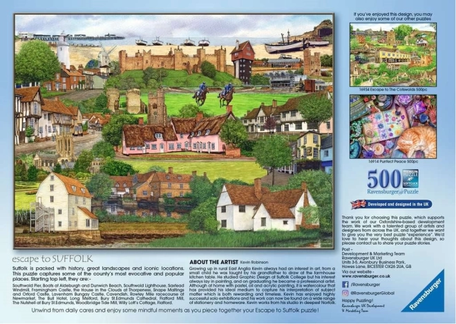 Uživajte v sprostitvi in zabavnem izzivu s sestavljanko RAVENSBURGER »Pobeg v Suffolk« s 500 kosi. Kakovostna izdelava, natančni izrezi in čudovit motiv za mirne večere in trening zbranosti.