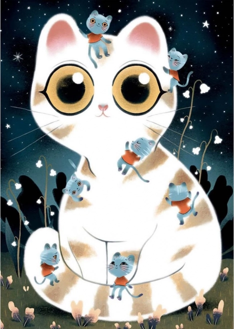Fluorescentne (neonske) puzzle z motivom prisrčnih muc, ki svetijo v temi.