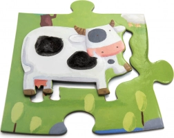 Ilustrirani motivi s kmetije učijo otroke prepoznavati živali, širijo besedni zaklad in naravno spodbujajo komunikacijo med igro.