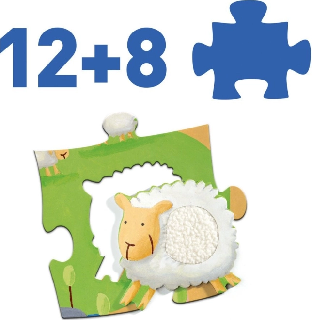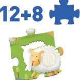 - 12 glavnih koščkov + 8 vstavljivih živali s teksturo
