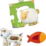 Iščete smiselno igračo, ki zabava in hkrati razvija? Tipne sestavljanke kmetija Djeco združujejo čudovite ilustracije z različnimi površinskimi teksturami, ki posnemajo živalski kožuh. Otroci pri sestavljanju urijo pozornost, koordinacijo oko–roka ter razlikovanje površin z dotikom.
