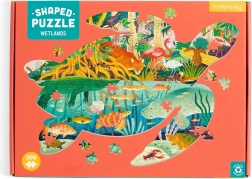 Motiv mokrišč ilustratorke Kaley McKean otrokom in odraslim prinaša barvit potop med aligatorje, pume, kačje pastirje in druge živali. Končana sestavljanka je v obliki želve, zato na mizi deluje kot izvirna dekoracija in odlično darilo za ljubitelje narave.