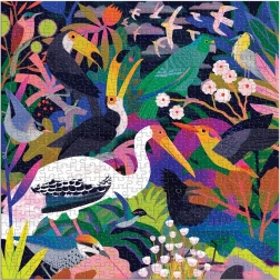 Odkrijte tropski svet, poln tukanov, papig in drugih eksotičnih ptic. Ko motiv sestavite, le ugasnite luč – poseben tisk razkrije svetleče elemente, ki oživijo celotno sliko in jo spremenijo v nočni prizor. Zahvaljujoč čvrstim koščkom in natančnemu izrezu je sestavljanje tekoče in prijetno.