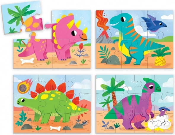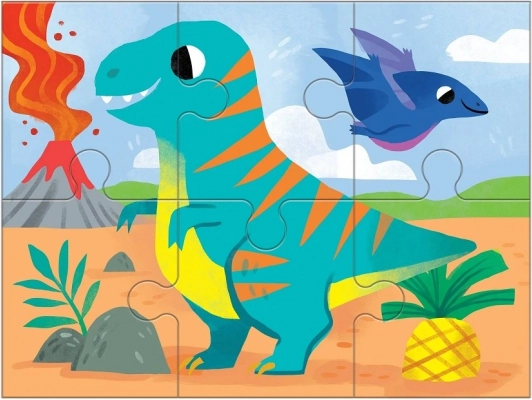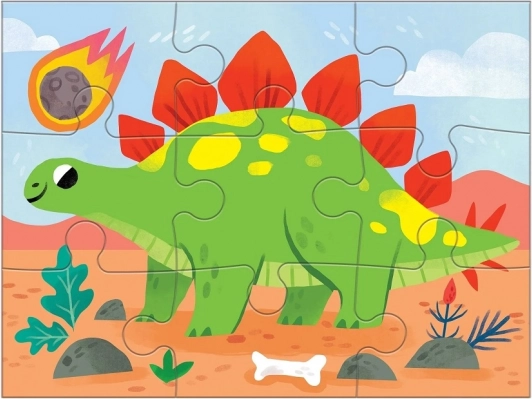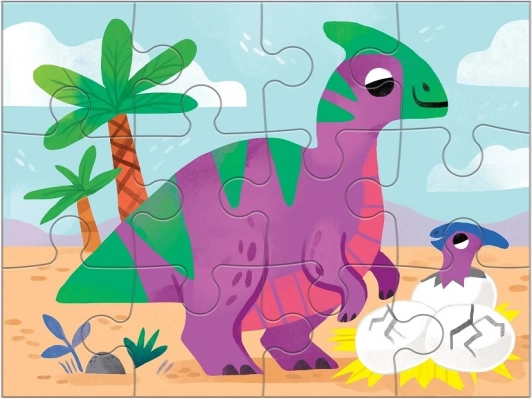Komplet Mudpuppy Dinozavri 4 v 1 prinaša štiri različne sestavljanke z veselimi ilustracijami dinozavrov avtorice Kathryn Selbert. Vsaka sestavljanka ima drugačno stopnjo zahtevnosti (4, 6, 9 in 12 delov), zato je idealna za postopni razvoj fine motorike, potrpežljivosti in logičnega razmišljanja otrok od 2. leta dalje.