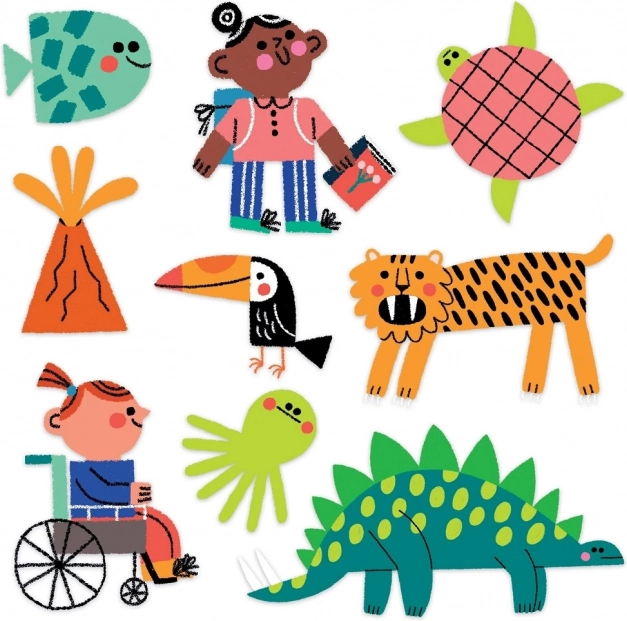 Potopite se v svet odkrivanja z izdajo Sestavljaj in išči – tema je »Prirodoslovni muzej«, kjer se srečujejo prazgodovinske in sodobne živali. Po sestavi slike lahko otroci vadijo pozornost in potrpežljivost z iskanjem več kot 40 skritih predmetov po robovih prizora. Zaradi kakovostnega tiska in mat površine so barve izrazite, podrobnosti pa lepo berljive.