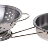 Visokokakovosten komplet loncev iz nerjavečega jekla. Po videzu je podoben pravemu kuhinjskemu priboru, le v pomanjšani različici. Komplet je primeren za otroke od 3 let dalje. Zagotovo bo razveselil vsakega malega kuharja ali kuharico.