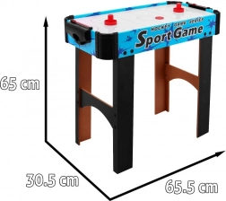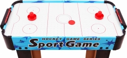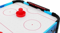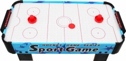 Uživajte v dinamični zabavi s kompaktno namizno različico zračnega hokeja. Igralna površina z odprtinami in pretokom zraka ustvari blazino, po kateri se plošček brez trenja gladko drsi. Dva igralca stojita nasproti in s pomočjo ročk (»strikerjev«) poskušata zadeti plošček v nasprotnikova vrata.