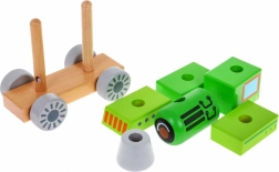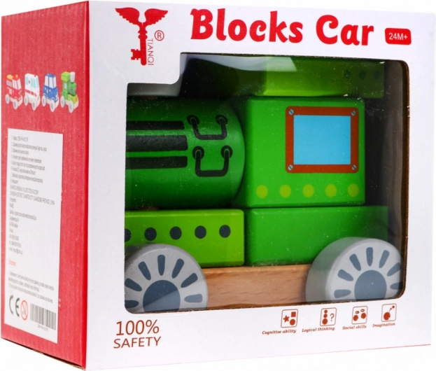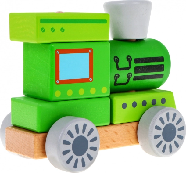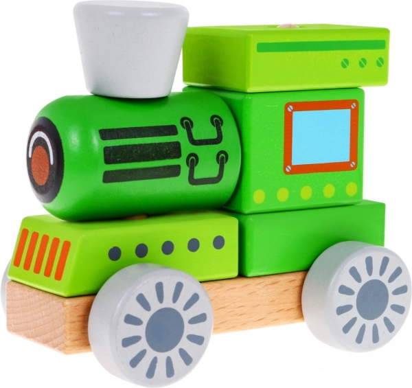 Ta leseni vlak je idealen prvi gradbeni komplet za radovedne otroke od 24 mesecev. Zahvaljujoč dvema zatičema na platformi lahko otroci sestavljajo in kombinirajo 6 lesenih kock v obliko lokomotive, urijo fino motoriko ter se učijo prepoznavati oblike in barve. Robustna lesena konstrukcija in varne, netoksične barve zagotavljajo dolgo življenjsko dobo in brezskrbno igro.