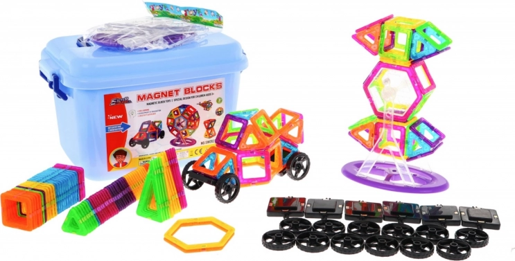 Odkrijte neskončne možnosti z Giga kompletom magnetnih gradbenih igrač, ki so idealne za otroke od 3. leta starosti. Enostavno povezovanje delov omogoča hitro ustvarjanje čudovitih konstrukcij. Komplet vsebuje ilustriran priročnik s primeri modelov za sestavljanje. Vse je praktično shranjeno v plastični škatli z ročajem za enostavno prenašanje.