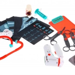 Vsebuje vse od stetoskopa do termometra in injekcij, kar podpira ustvarjalno igro vlog.