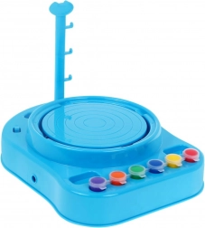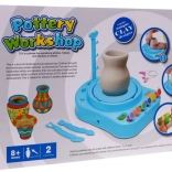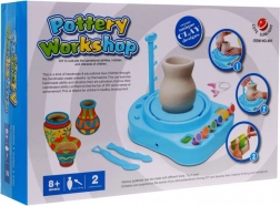 | | Komplet malega lončarja je izobraževalna igrača za izdelavo in barvanje keramičnih posod. Otroci si lahko izdelajo lastne lonce, skodelice ali vrče ter jih nato okrasijo z barvami po svojih zamislih. Keramično kolo se vrti z dvema hitrostma, počasneje in hitreje. Igrača spodbuja domišljijo ter razvija spretnost, ročne in likovne veščine. Igrača je primerna za otroke od 8 let in ima certifikat CE. Igrača deluje na baterije tipa 3 x R14 (niso priložene). | Vsebina kompleta |