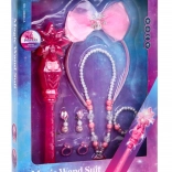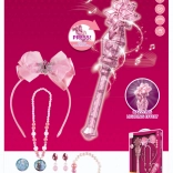 Interaktivni set za male princeske - vile ponuja otrokom od 3 let čarobno izkušnjo z magično palico z zvočnimi in svetlobnimi učinki, skupaj s stilskim obročem s čudovito pentljo, ogrlico, zapestnico, uhani in prstani.