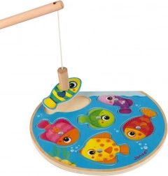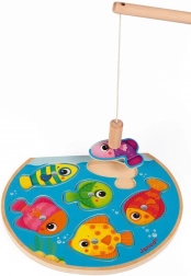 Odkrijte prvo magnetno igro za najmlajše: lesena vstavljanka z motivom ribolova znamke JANOD. Zahvaljujoč magnetni ribiški palici otroci zlahka “ulovijo” pisane ribice in se naučijo vračati jih na pravo mesto. Igra na zabaven način spodbuja potrpežljivost, natančnost in zbranost.