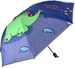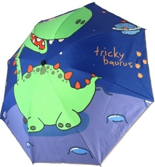 Platno dežnika krasi pisan dinozavrov motiv, ki bo pritegnil pozornost vsakega otroka.