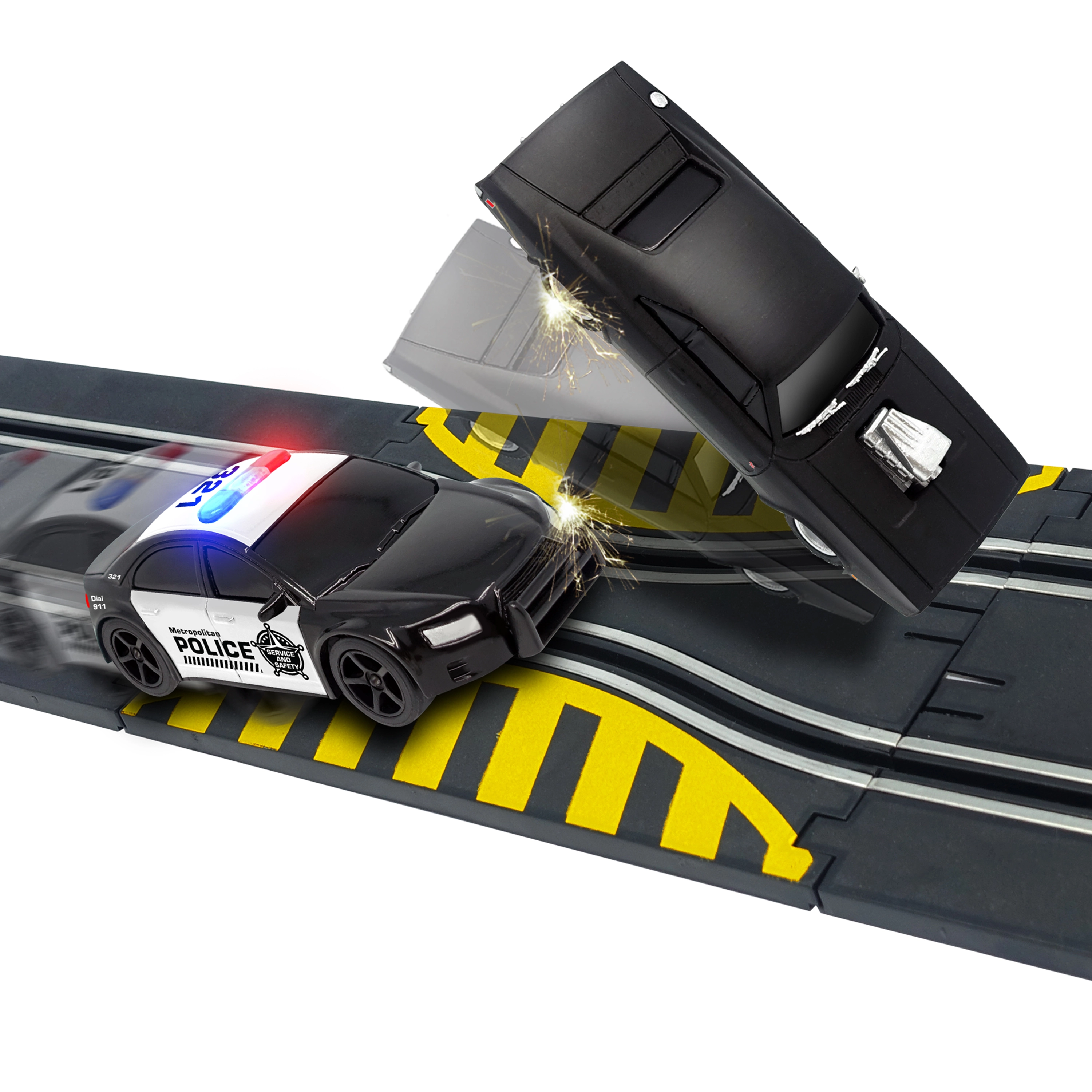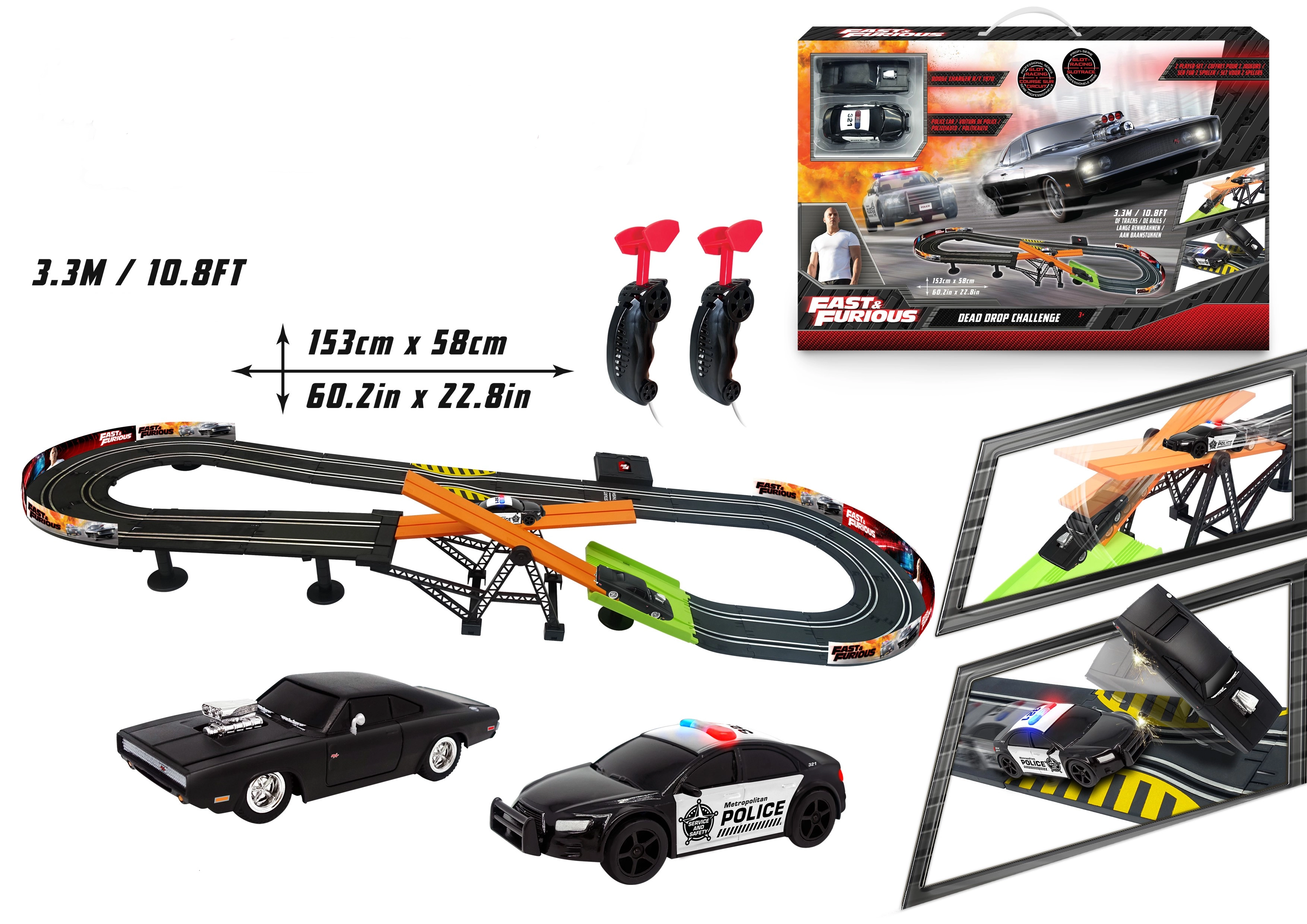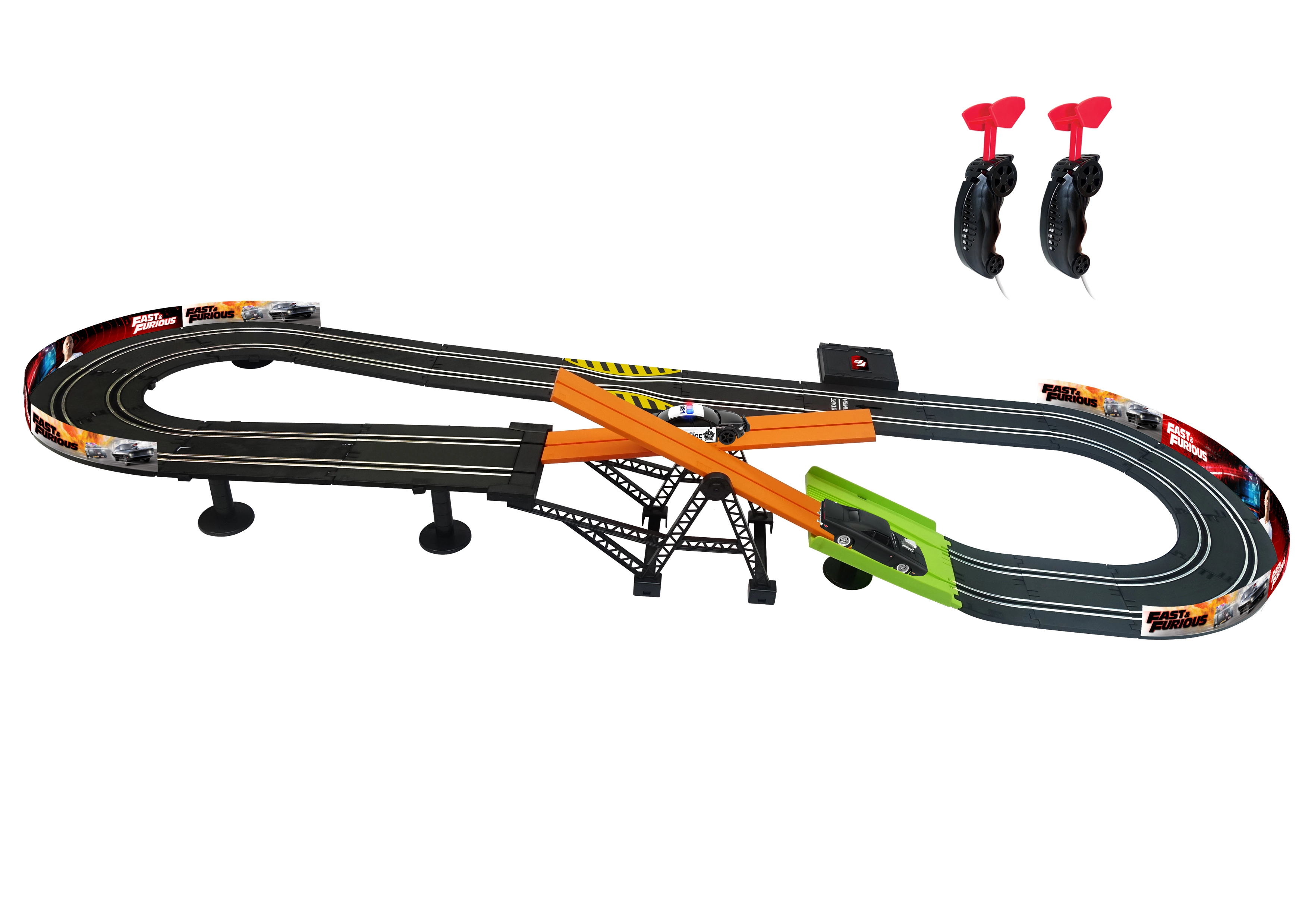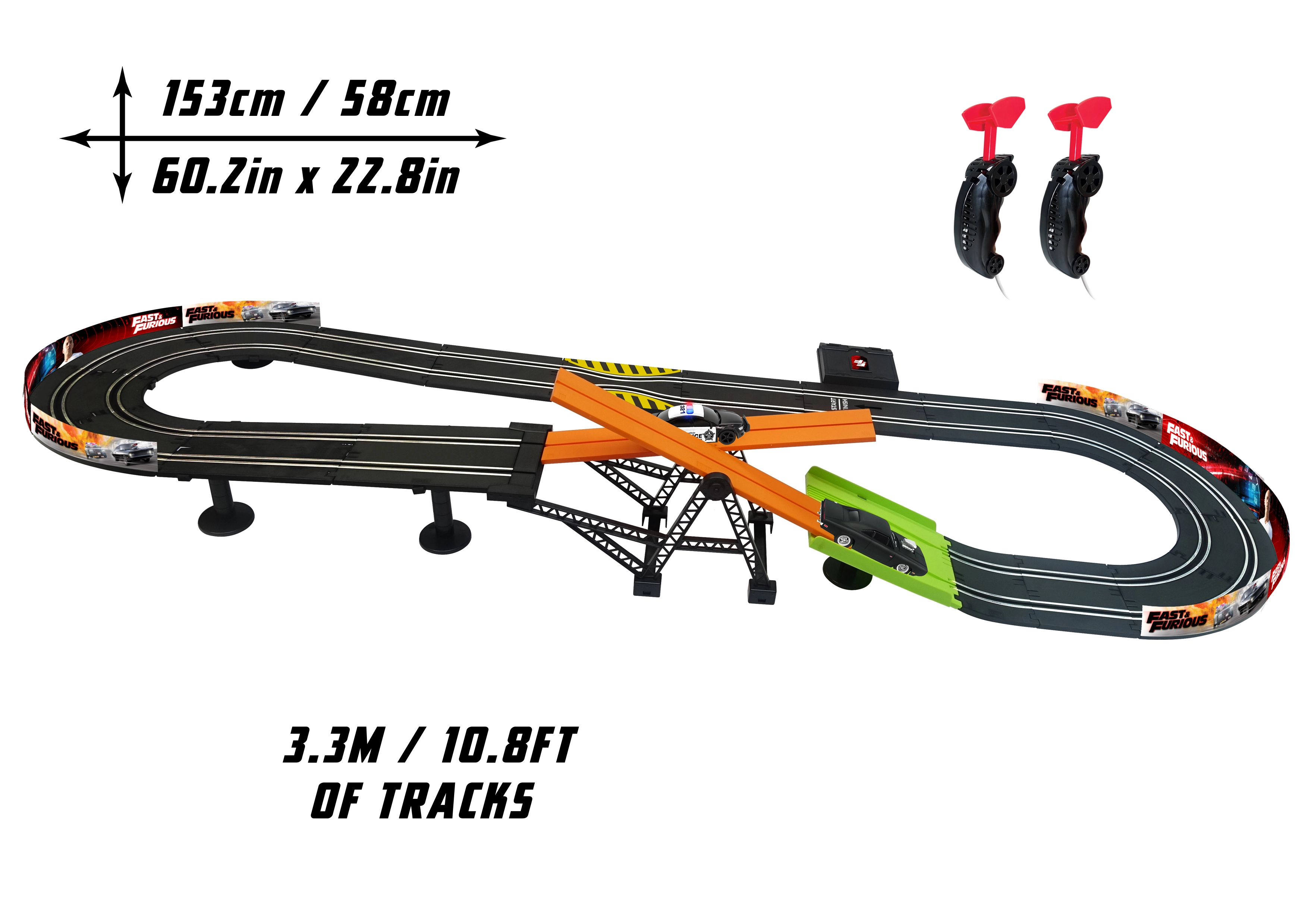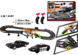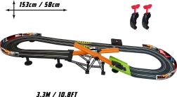 Avtocesta z ovirami Hitri in drzni. Dolžina proge 3,3 m. Dimenzije 153 × 58 cm. Vključeni 2 avtomobila. 6× AA baterije za baterijski modul niso priložene. Priložena navodila za sestavljanje.
