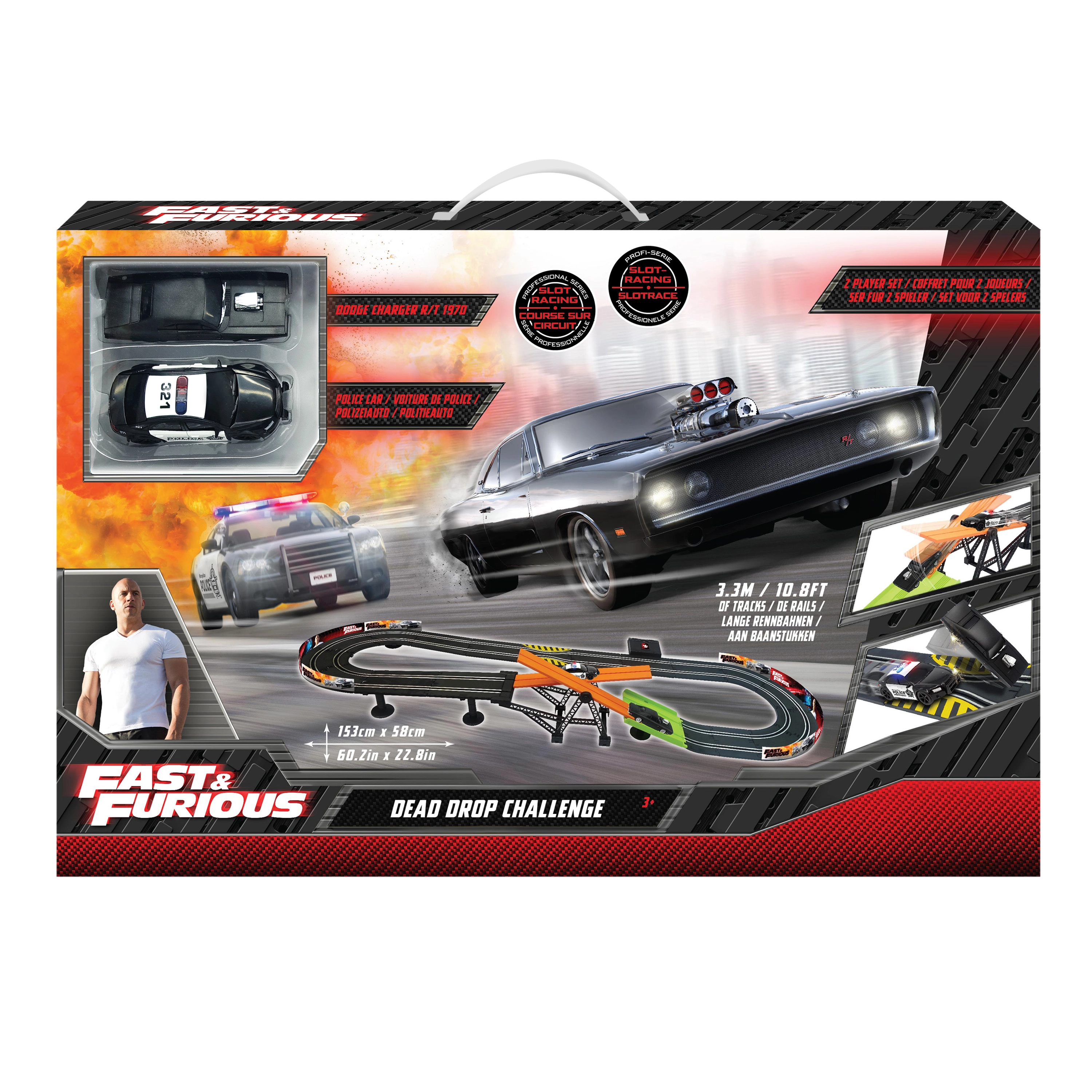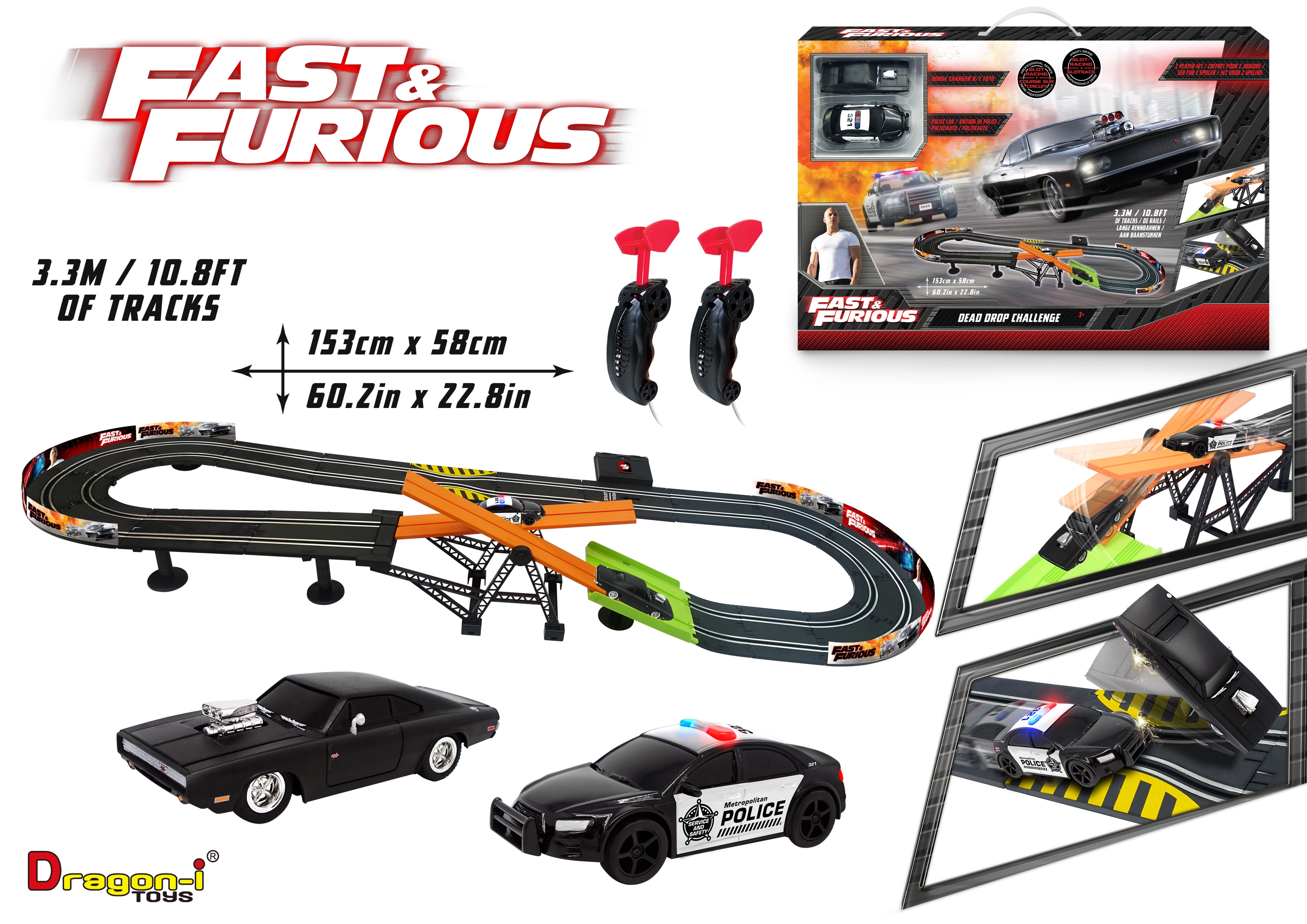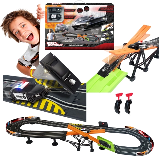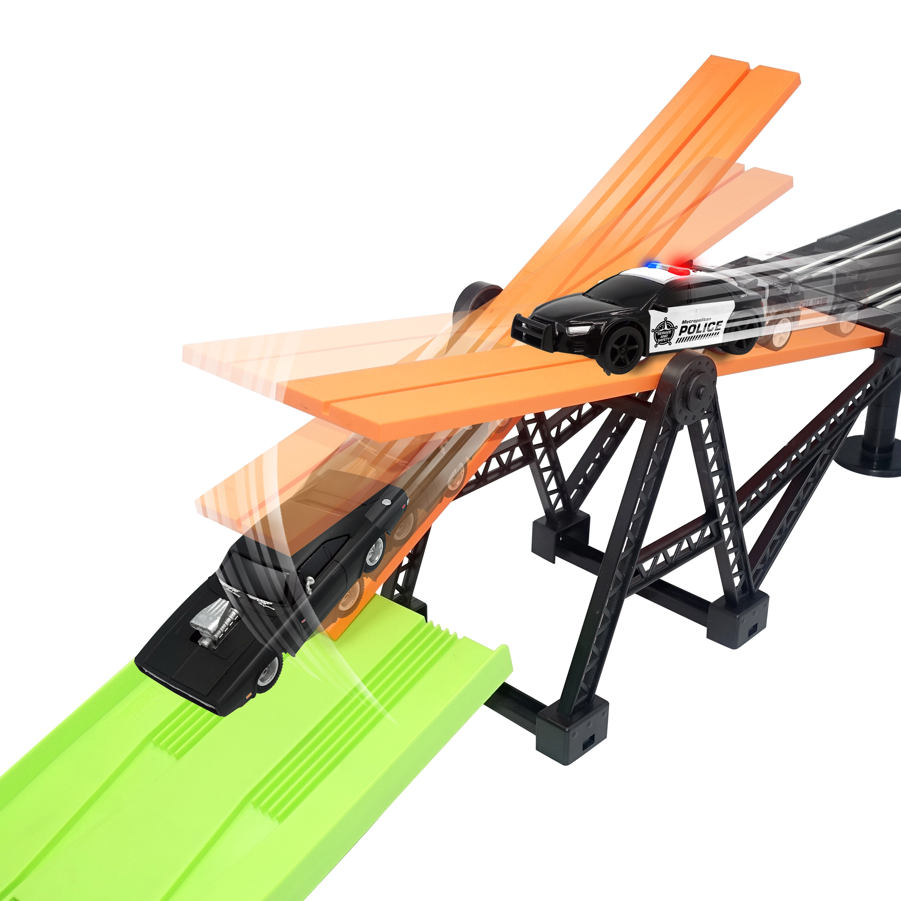 Avtocesta z ovirami Hitri in drzni. Dolžina proge 3,3 m. Dimenzije 153 × 58 cm. Vključeni 2 avtomobila. 6× AA baterije za baterijski modul niso priložene. Priložena navodila za sestavljanje.