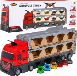 Velik tovornjak s katapultom otrokom ponuja neskončne možnosti igre: služi kot shranjevalno vozilo za avtomobilčke, po razložitvi se spremeni v dolgo dirkalno stezo, vgrajeni katapult pa izstreli avtomobilčke naprej. Konstrukcija je stabilna, plastični deli so lahki, gumijasta kolesa pa zagotavljajo tih in tekoč premik.
