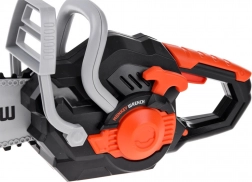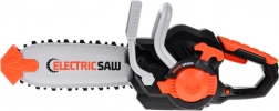 Ta otroška električna žaga je zasnovana za domiselno igro in učenje varnega ravnanja z orodjem. Gumijasta, vrteča se veriga je mehka in varna, obenem pa deluje realistično. Ob pritisku na gumb se žaga zažene in spremlja jo avtentičen zvok, ki okrepi doživetje igre.