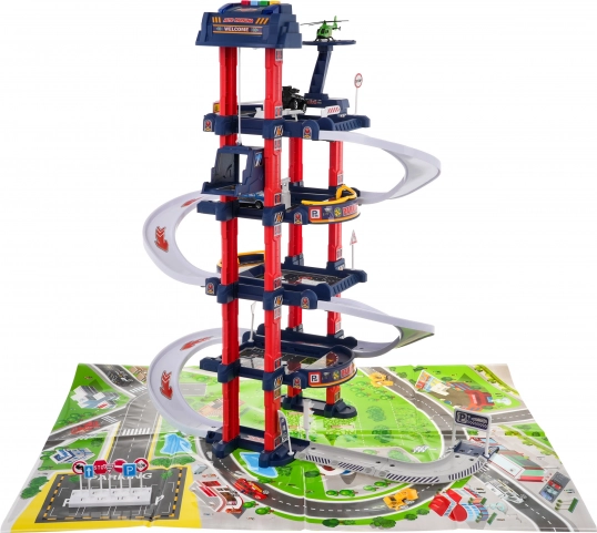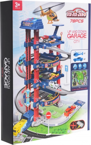 Večnivojska parkirna hiša ponuja parkirna mesta, bencinsko črpalko, dvigalno ploščad za avtomobile in heliport. Nadzorna plošča z barvnimi gumbi upravlja dvigalo in sproži učinke: rdeči gumb spusti dvigalo, rumeni ga dvigne. Modri gumb predvaja zvoke policije, gasilcev, reševalnega vozila, zagona motorja in streljanja, zeleni gumb aktivira hupo. Na plošči utripajo modre in rdeče luči, ki še okrepijo vzdušje igre.