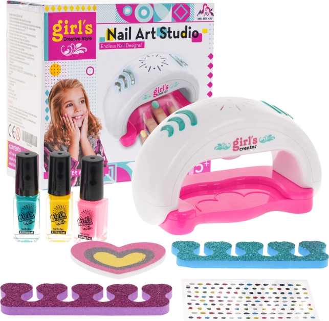 Ta komplet za nohte prinaša majhnim navdušencem domišljijo in zabavo neposredno v njihovo sobo. Sušilec za nohte učinkovito suši nohte in oddaja realistične zvoke sušenja, medtem ko njegova zgornja stran nežno sveti. Vsi laki za nohte so varni in netoksični, enostavno se odstranijo, kar omogoča neskončno zabavo brez skrbi.