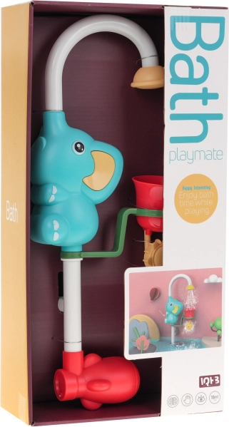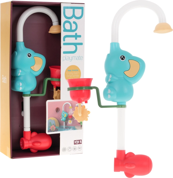 Ta kopalna igrača s prijaznim slonom deluje na baterije in srka vodo, ki jo nato razprši skozi slonov rilec v lonček. Lonček je perforiran, kar omogoča razpršitev vode v različne smeri skozi vrtljivo kolesce za 360 stopinj. Tuš je zasnovan tako, da je spodnji del potopljen pod vodo, medtem ko zgornji del ostaja nad gladino. Zaradi dveh gumenih priseskov lahko igračo enostavno pritrdite na kad ali tuš. Slonov rilec je mogoče obračati za 180 stopinj, kar povečuje raznolikost igre.