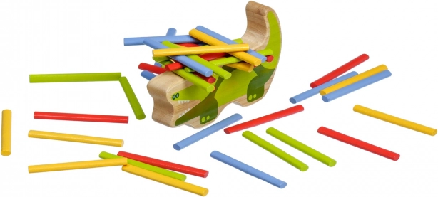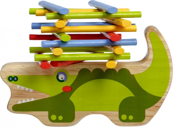 Lesena Balansna Igra Krokodil je zabavna in ustvarjalna igra za otroke, ki spodbuja razvoj motoričnih spretnosti in potrpežljivost. Z barvnimi paličicami in krokodilom kot osnovo ponuja ure kakovostne zabave.