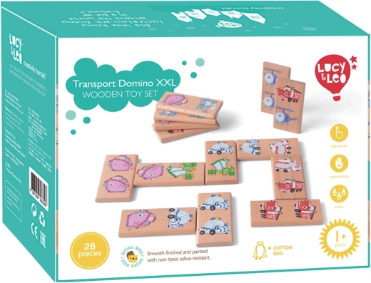 Leseno domino XXL je odlična igrača za otroke, ki radi spoznavajo in odkrivajo nove stvari. Vsak izmed 28 kosov vsebuje ilustracije, ki otrokom pomagajo prepoznati različna prevozna sredstva kot so gasilski avto, reševalni avtomobil in drugi.