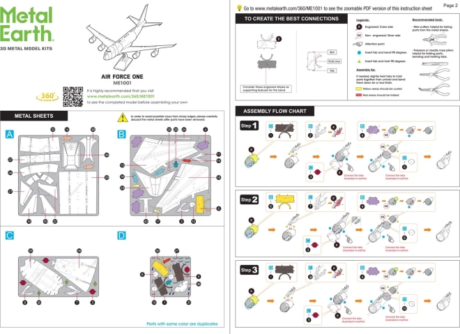 Komplet za ustvarjanje fascinantnega kovinskega 3D modela. Sestavljanje sestavljanke METAL EARTH zahteva potrpežljivost in spretne roke. Končni rezultat pa v celoti poplača vložen trud. Miniaturne replike so impresivna in privlačna dekoracija. Iz kvadratnih jeklenih ploščic bodo pod vašimi rokami nastali podrobno dodelani, osupljivi modeli. Avtentičen videz 3D sestavljank METAL EARTH je dosežen z natančnim laserskim graviranjem. Orodje ni priloženo. DELOVNI POSTOPEK: Posamezne dele odstranite iz kovinskih ploščic; po potrebi uporabite majhne klešče za rezanje (niso priložene). Deli se med seboj spajajo s pomočjo zatičev, ki jih tvorita jeziček in odprtina. Jeziček upognite z majhnimi tankimi kleščami (niso priložene) in postopoma povežite vse zatiče, dokler ne nastane zelo realističen mojstrski izdelek!