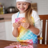 Igranje glavnega kuharja še nikoli ni bilo zabavnejše! Ta otroški komplet za peko vsebuje predpasnik, kuharsko kapo, rokavico ter praktičen pribor, kot so modelčki, merilne žlice, valjar, lopatka in metlica – vse v očarljivem mavričnem dizajnu. Idealno za prve pekovske poskuse in ustvarjalno igro v kuhinji. Starost 3+*.