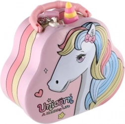 Iščete prikupno in praktično darilo za otroke? Kovinska hranilnica – torbica s samorogom je idealna izbira. Otroci bodo v njej varno shranili svoje prve prihranke zahvaljujoč zaklenljivemu pokrovu, medtem ko zgornja reža za vstavljanje kovancev olajša vsakodnevno varčevanje.