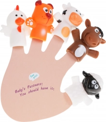 Spremenite vsakdanje trenutke v čarobne zgodbe z kmetije. Komplet vsebuje pet prikupnih prstnih lutk in mehko knjižico z angleškim besedilom ter piskalnikom v desnem spodnjem kotu naslovnice. Zaradi vodoodporne izvedbe je primeren tudi za v kad – pripovedovanje se lahko nadaljuje tudi med kopanjem.