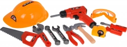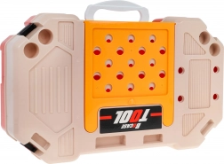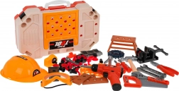V kompletu je široka paleta plastičnega orodja (žaga, kladivo, klešče, izvijači, ključi), primež, zobniki, pritrdilni elementi in zaščitna oprema (očala, čelada). Otroci tako varno urijo fino motoriko, koordinacijo oko–roka in logično razmišljanje, hkrati pa uživajo v zabavnih simuliranih delavniških opravilih.