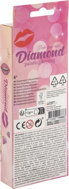Set za diamantno slikanje obeska vam omogoča, da ustvarite svoj dekorativni obesek. Vsebuje vse, kar potrebujete: obesek, pero, kamenčke, posodico in vosek. Kamenčke preprosto nanašajte na označena mesta s pomočjo aplikacijskega pera.