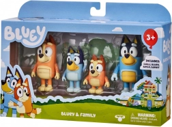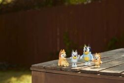 Štiri priljubljene like iz serije BLUEY na enem mestu – pripravljene za oživljanje prizorov in ustvarjanje novih zgodb.