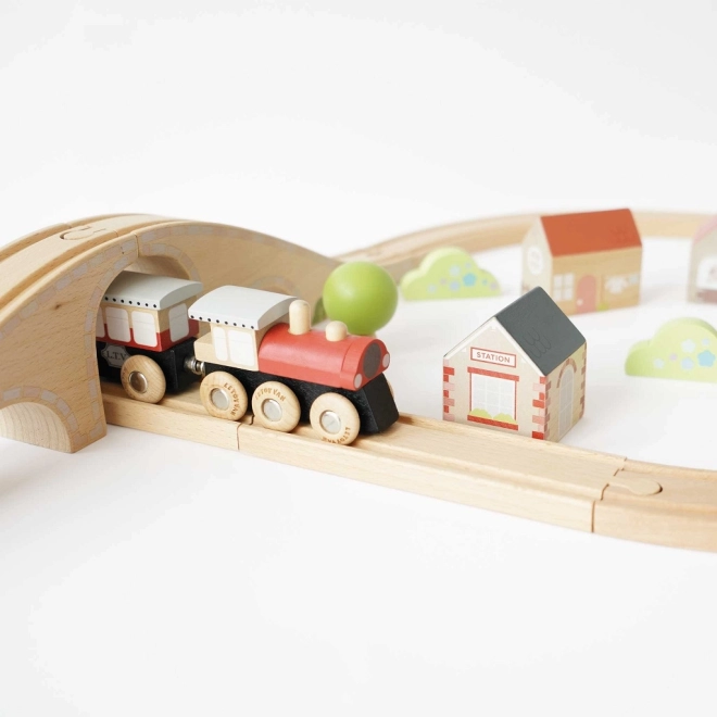 Ta vlakovna je popolno orodje za spodbujanje ustvarjalne igre pri malčkih. Izdelana je iz visokokakovostnega lesa s FSC certifikatom, kar zagotavlja, da je okolju prijazna. Set vključuje: