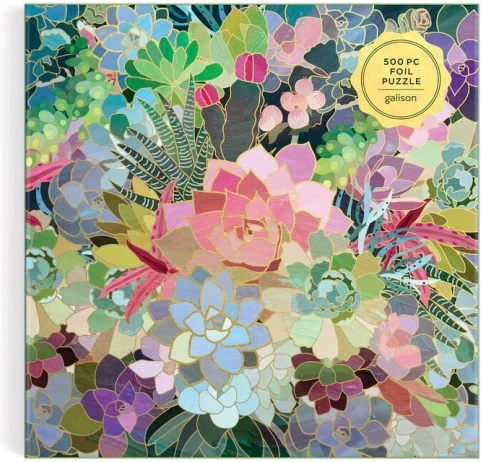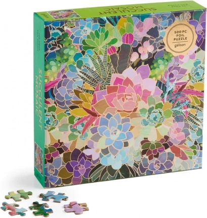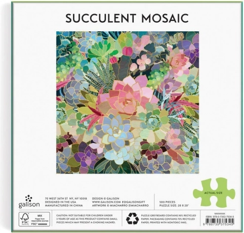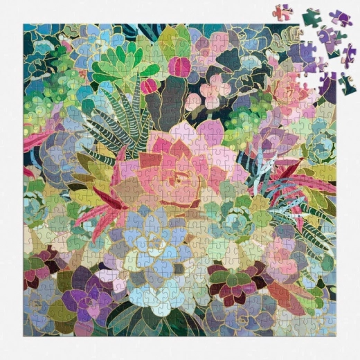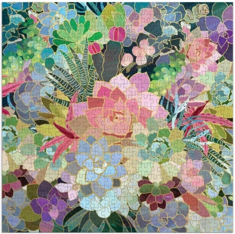 Potopite se v pomirjujoče sestavljanje z motivom umetnice Mia Charro. Motiv »Succulent Mosaic« zasije zahvaljujoč zlati foliji, ki poudari konture in podobi doda izjemen šarm. Natančno izrezani koščki, gladka zadnja stran in mat površina zagotavljajo udobno sestavljanje brez bleščanja ter s popolno berljivostjo podrobnosti.