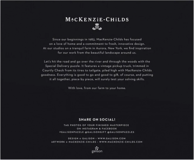 Uživajte v izvirni zabavi z oblikovano sestavljanko s 750 koščki, ki po sestavljanju ustvari obliko avtomobila na poti z božičnega nakupa. Posebno oblikovani koščki prinašajo večji izziv in veselje pri sestavljanju, po lepljenju pa se sestavljanka spremeni v stilsko dekoracijo vašega doma. Del pakiranja je tudi predloga motiva.