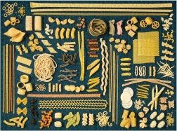 Sestavljanka vsebuje 20 posebnih koščkov v obliki testenin. Del pakiranja je tudi predloga za sestavljeni motiv. Dimenzije sestavljene sestavljanke približno 69 × 51 cm