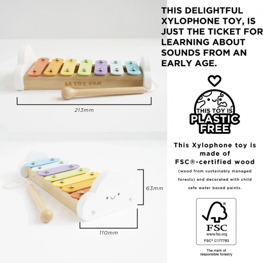 Odkrijte čar glasbe z otroškim ksilofonom LE TOY VAN v nežnih mavričnih barvah. Ta kakovosten lesen instrument s paličico iz lesa s certifikatom FSC razvija sluh, ritem in fino motoriko. Poslikan je z netoksičnimi barvami na vodni osnovi in zasnovan tako, da prenese vsakodnevno igranje.