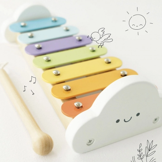 Otroški mavrični ksilofon LE TOY VAN je idealna izbira za prve glasbene korake. Zahvaljujoč prijetnemu zvoku in varnim materialom spodbuja naravno radovednost otrok ter pomaga razvijati občutek za ritem in melodijo. Dizajn z oblački pritegne na prvi pogled in se lepo poda v otroško sobo.