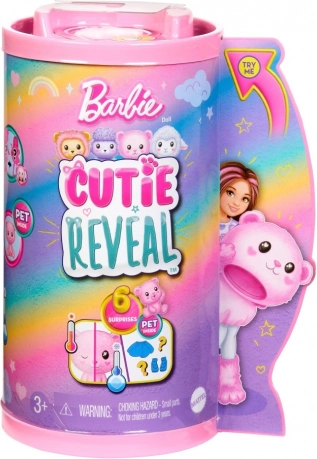 Punčka Barbie Chelsea Cutie Reveal prinaša zabavo polno odpiranja in odkrivanja. V paketu najdete majhno punčko Chelsea, skrito v plišastem medvedkovem kostumu, stilske dodatke in mini ljubljenčka. Zgornji del kostuma lahko po obrnitvi spremenite v puhasto jakno, glava kostuma pa se spremeni v ležišče za ljubljenčka.