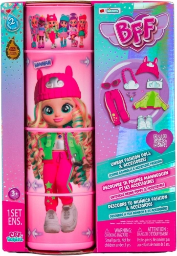 Punčka je zasnovana za deklice in zagotavlja ure ustvarjalnosti ter zabave. Naj bo kot darilo za rojstni dan ali kar tako, punčka Cry Babies BFF Hannah prinaša veselje in ustvarjalnost v vsako igro.