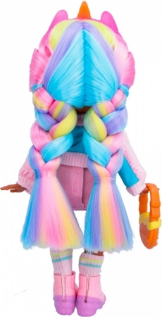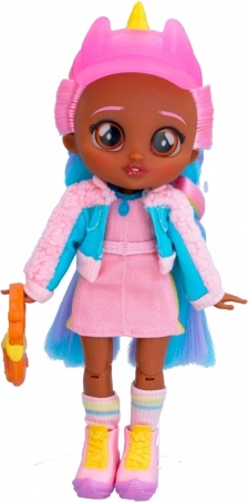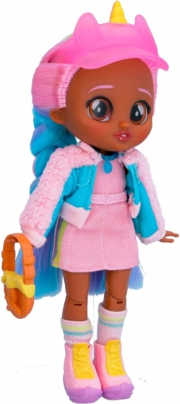 Jassy s svojim stilskim mavričnimi lasmi, steklenimi očmi in 6 gibljivimi deli je pripravljena na vsako pustolovščino! Nosí modna oblačila, ki jih dopolnjuje ljubek klobuk z rogom samoroga! Oblečena je v športno rožnato-modro jakno, ljubko rožnato krilo in ujemajoče se superge! Ne pozabi dodati tudi torbice v obliki preste in ogrlice BFF!