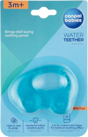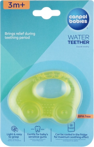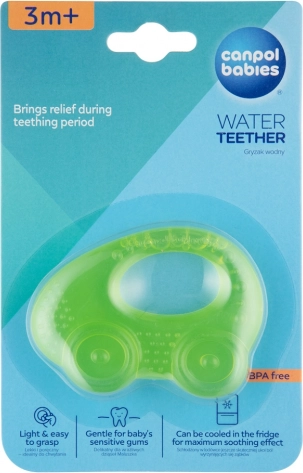 Za največji učinek grizalo na kratko ohladite v hladilniku (ne zamrzujte). Napolnjeno je z mikrobiološko testirano destilirano vodo, ne vsebuje BPA in je na voljo v več privlačnih barvah. Idealna izbira za vsakodnevno pomirjanje občutljivih dlesni.