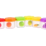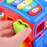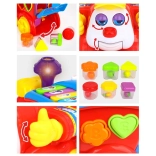 Vsebuje komplet barvnih kock različnih oblik z ustreznimi odprtinami za razvoj logike in fine motorike.