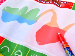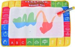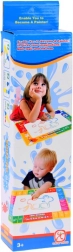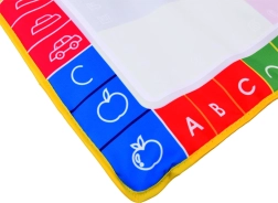 Ta barvita vodna risalna podloga spremeni risanje v čisto zabavo. Dovolj je, da pero napolnite z vodo in rišete, kar vam pade na pamet – roke, miza in stene ne bodo umazane. Ko se risba posuši, izgine in otroci lahko ustvarjajo znova in znova. Podloga je lahka, zlahka jo zvijete, zaradi pakiranja v barviti škatli pa je primerna tudi za na pot ali kot darilo.