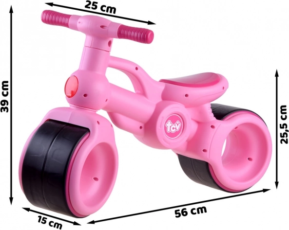 Lahkoten, stabilen in varen roza poganjalec TCV pomaga otrokom od 1. leta razvijati ravnotežje in koordinacijo. Ima široka plastična kolesa za zanesljivo vožnjo, ergonomske ročaje in udobno oblikovan sedež. Zahvaljujoč nizki teži 2,2 kg in praktičnemu ročaju se zlahka prenaša in je primeren za notranjo in zunanjo uporabo.