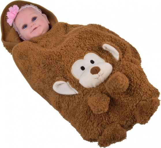 Razprite, zapnite z zadrgo in zvijte – in nastane prisrčna opička. Otrok uživa udobje odeje in zabavo s pliškotom, kadarkoli in kjerkoli.
